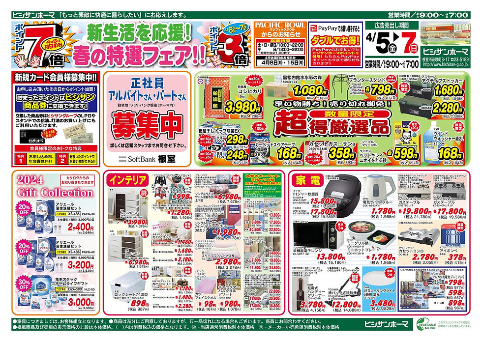 【1/10】 3の付く日はヒシサンホーマポイント3倍!